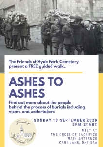 Starts at 3pm. Please meet at the main entrance on Carr Lane, at the Cross of Sacrifice, 5 minutes before the walk.